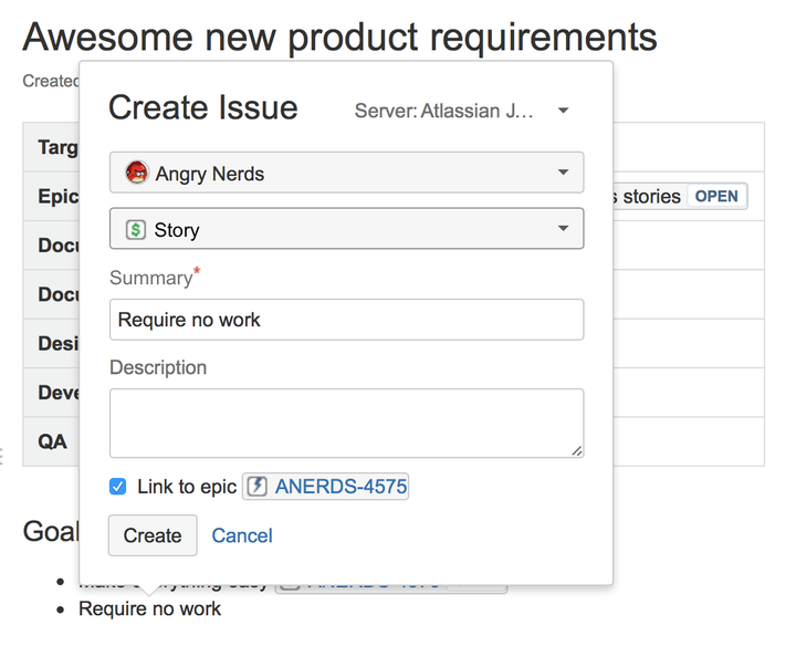 Confluence is designed to make it simple to create JIRA issues and then track their progress. Once the application link has been created, select the Create New Issue tab in the Confluence window and use the form to register a new issue. You will be able to select which project the issue relates to and the type of issue being flagged via drop down menus, before adding a summary and a more detailed description of your own. Later versions of Confluence (v.5.4 and higher) have streamlined this process even further, enabling users to highlight specific text within the Confluence page and then create an issue in JIRA by clicking the icon.