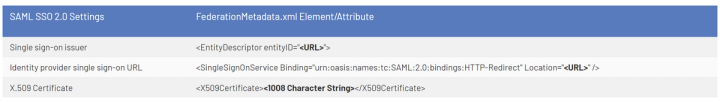 Your Azure AD administrator will send you a FederationMetadata.xml file. You will have to extract the following elements from this file: