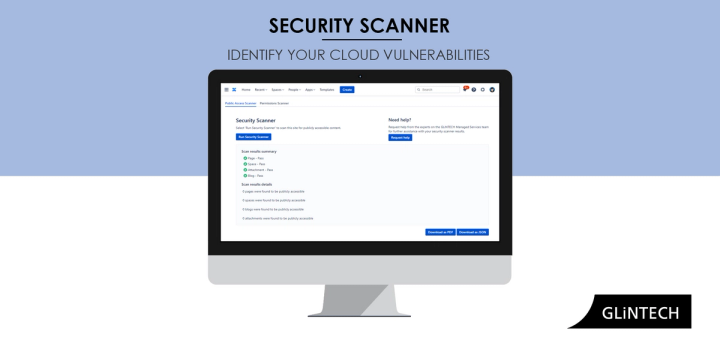 As one of only 3 certified Cloud Specialized Atlassian Partners, the experts here at GLiNTECH have put our dev hats on and created a tool to help you find your vulnerabilities. Available for free on the Atlassian Marketplace, the Security Scanner app will scan your cloud sites and report on any publicly accessible components.