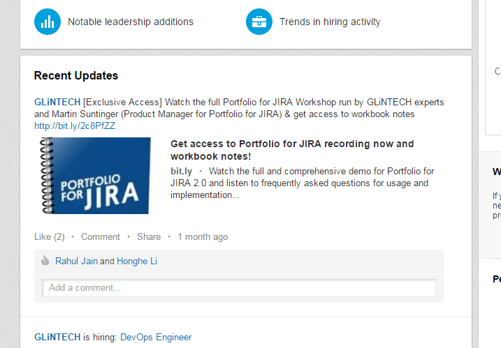 A common request our Atlassian experts receive is for the ability to embed a feed of their LinkedIn Company Updates into Confluence.