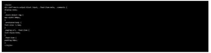 To style the feed (it's ugly by default), we'll include a "HTML" macro that we can place some CSS inside.