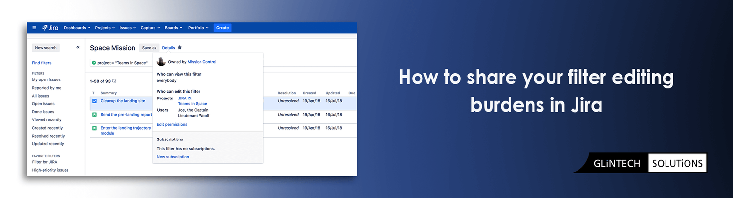 One of the useful features of Jira 7.12 is granting edit rights for filters and dashboards. Why? Because filters allow you to quickly display popular search results and share them with other team members. You can choose viewers and editors of the filters, allowing them to make changes whenever it is needed.